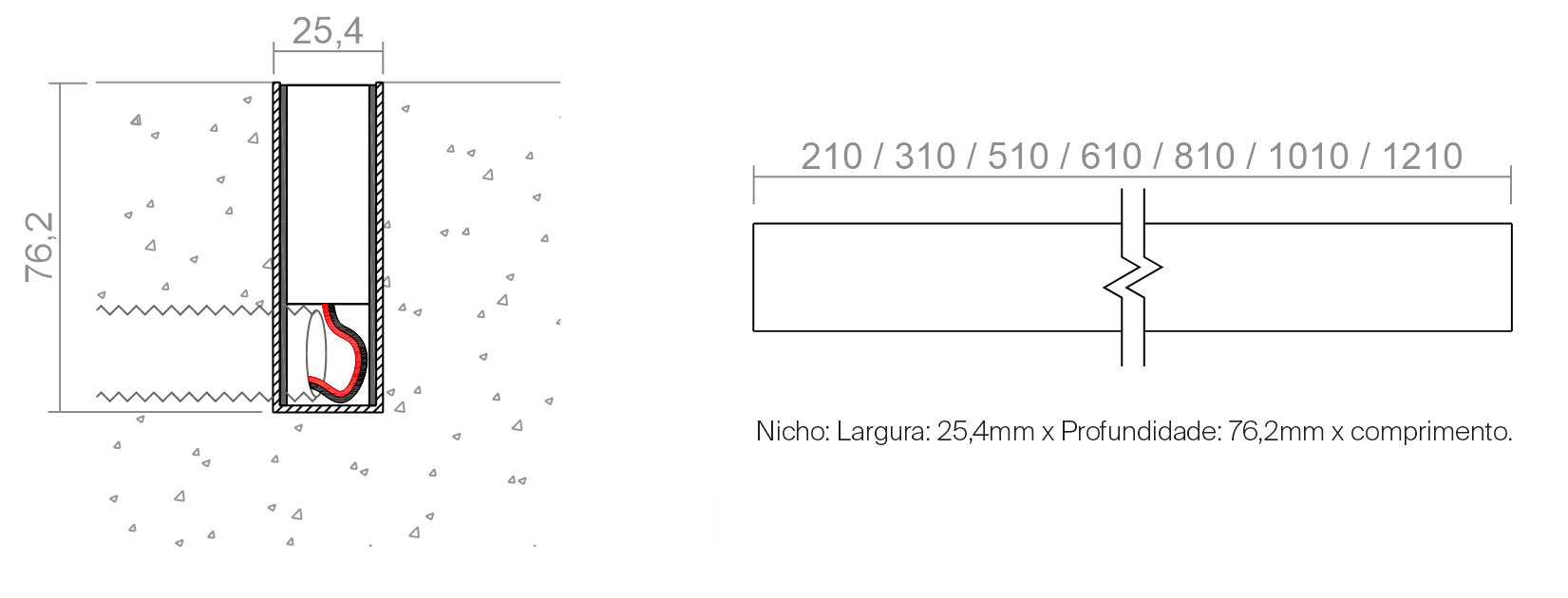 Acompanha nicho de alumínio para chumbar no piso