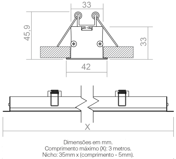 Perfil de Embutir LED 40mm com Difusor Recuado